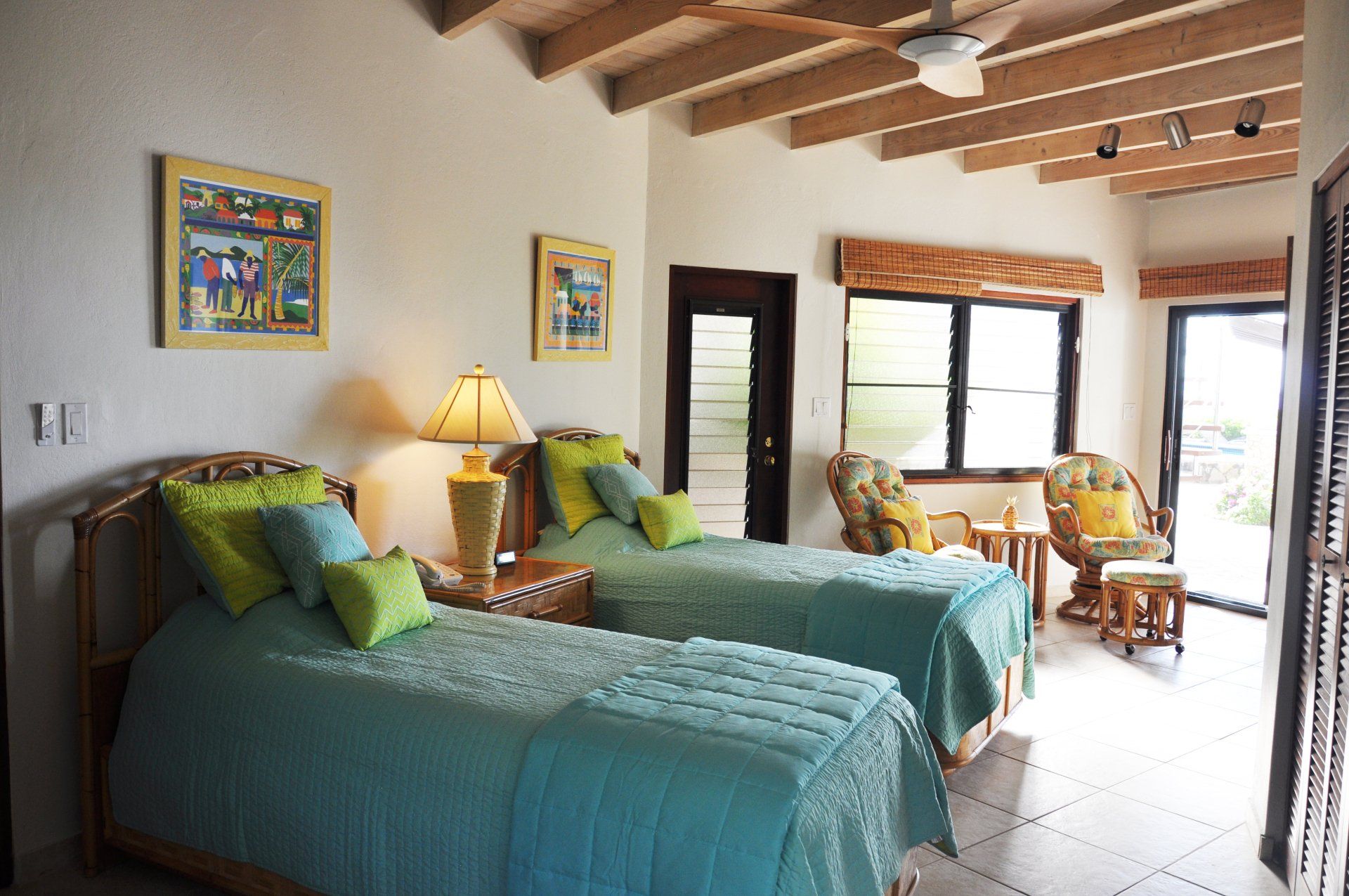 Caribbean Wind includes six lovely, spacious, air conditioned bedrooms, each with private baths and patios. The newly built upstairs Master suite is perfect for a couple’s luxury retreat or easily converted to a family haven. The master suite adjacent to the great room can be accessed from the pool patio. The twin bedroom can be accessed from the master suite or the patio, making it perfect for young children. The bedrooms in the separate pod are accessed from outside and include coffeemakers and refrigerators. If you insist on maintaining contact with the outside world, WIFI is available.