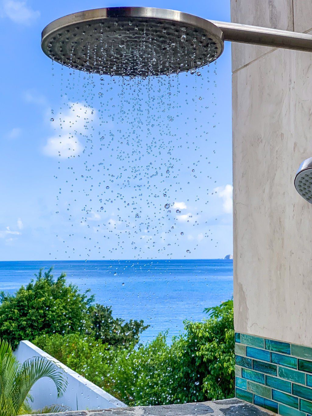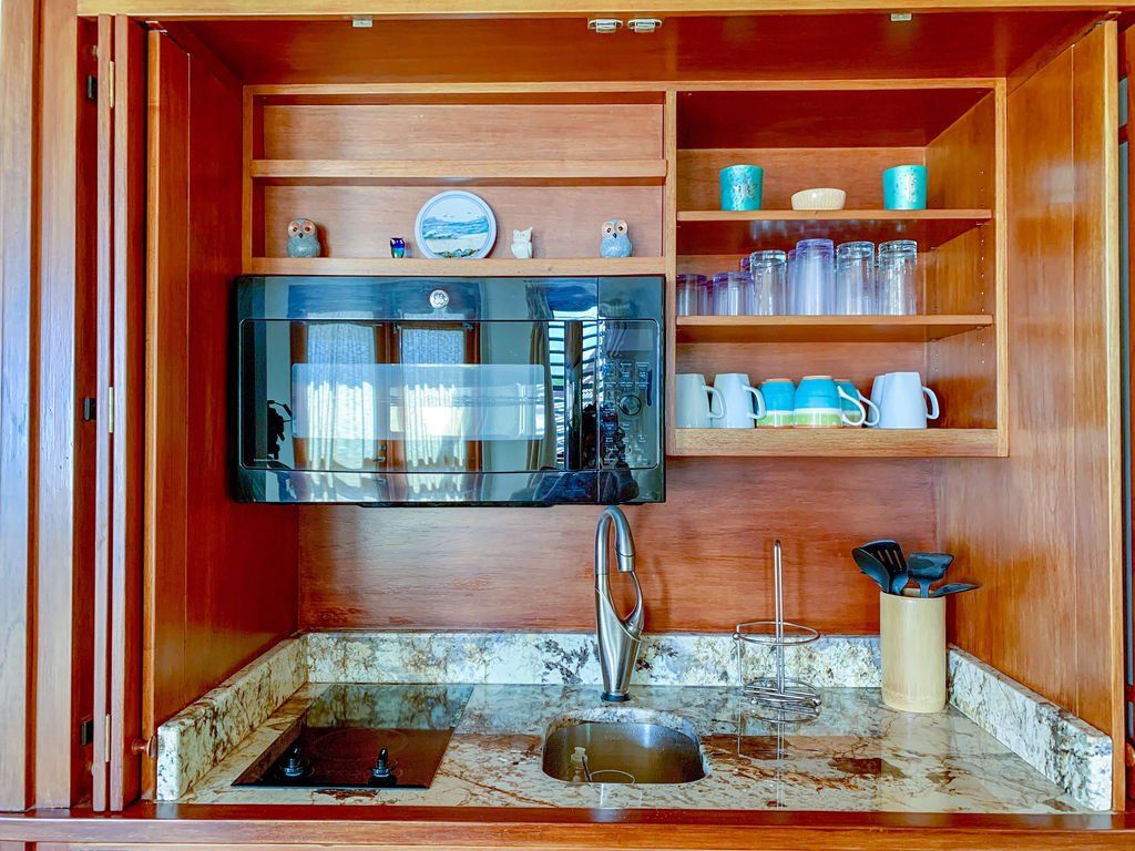 Master Suite Bedroom with a full bath, indoor and outdoor shower and a private balcony with great views. Living Room with Kitchenette and Pullout Sofa Bed and a half bath.